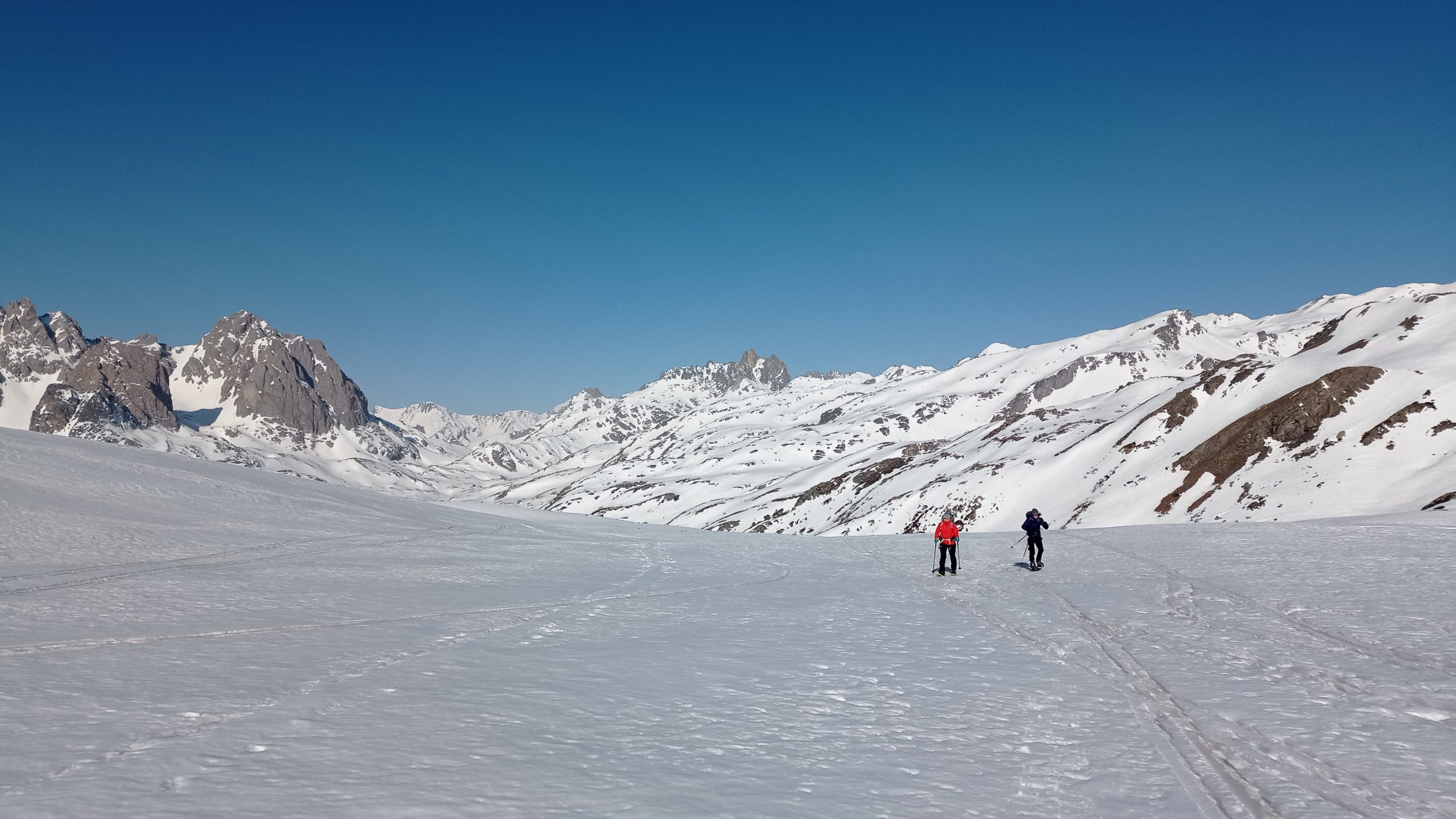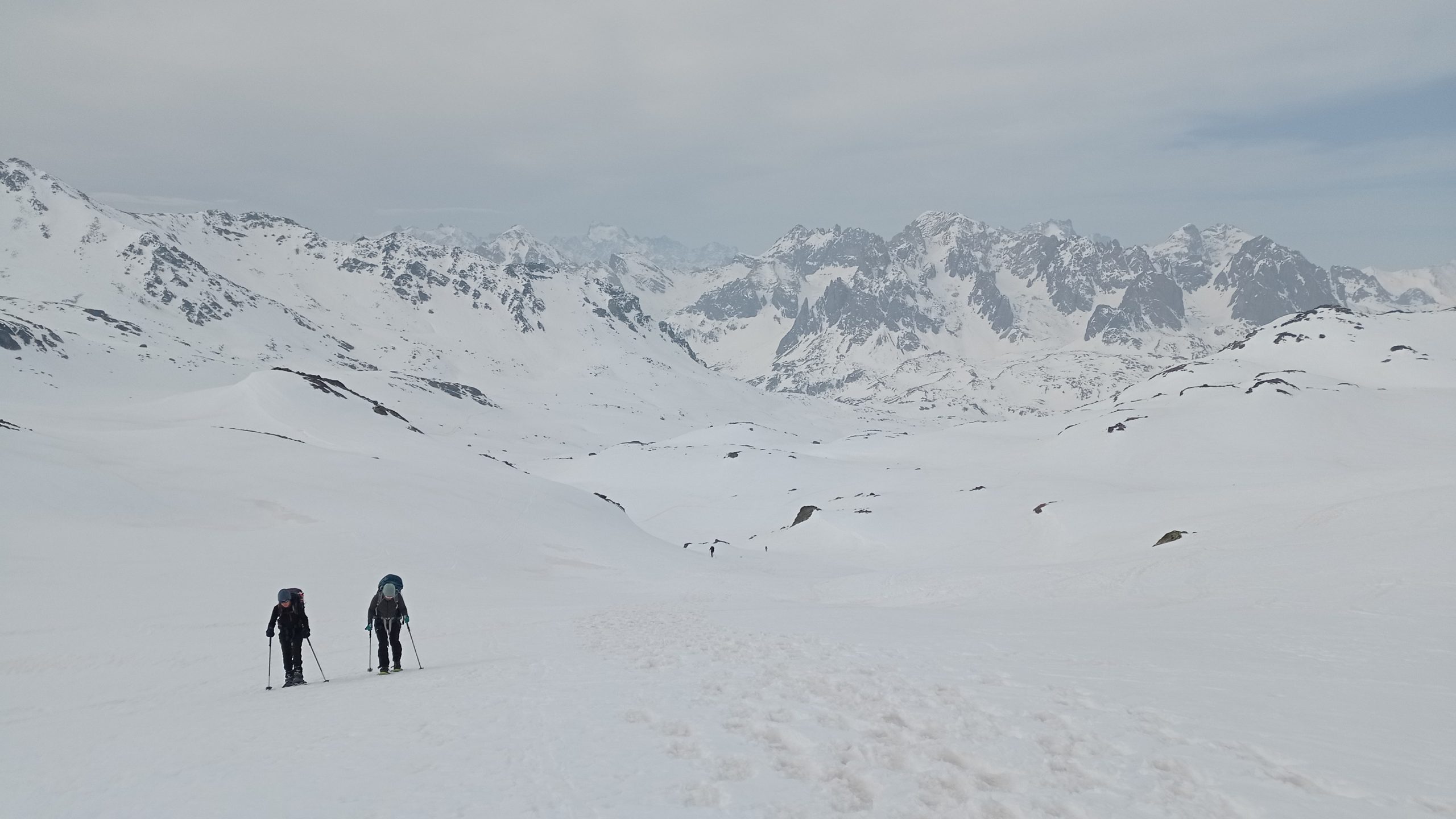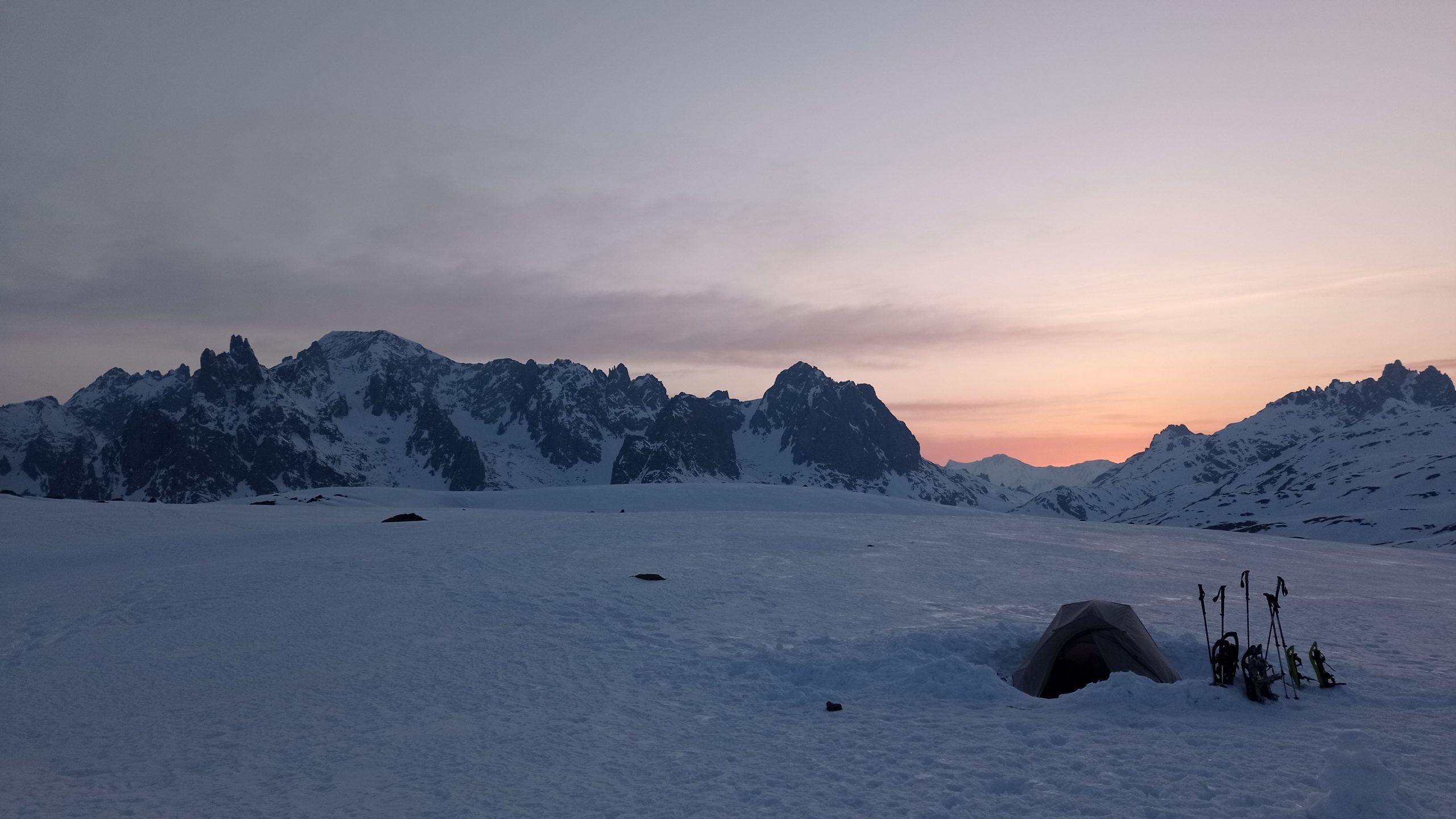 Les conditions de neige étaient globalement bonnes, et la météo au beau fixe. Un peu frisquet la nuit évidemment, mais les gourdes d’eau chaude au fond du sac de couchage ont bien fait leur boulot de bouillotes!