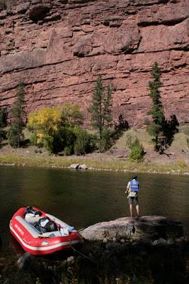 Leve matinal pour se rendre au « trout creek flies », ou on avait reserve un raft pour descendre la green river, grace au backpackers magazine feuillete au Grand Canyon. On y rencontre Doug, homme aux plusieurs casquettes : cuistot, pompiste, tenancier du magasin, organisateur des trips de rafts et assistant du magasin de peche. Il faut le voir jongler avec les pancartes « sorry, we’re closed » et « yes, we’re open » au fur et a mesure qu’il passe d’un gichet a l’ autre. Les trips de Doug ont un cote aventureux : il nous explique sans aucun topo et dans le desordre comment aborder les differents rapides de la riviere : « pay attention to Red Creek Rapid, we’ve had people dying here ».