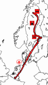 - Retour avion : arrivée à Charleroi vers 20h10 le 14 août flight 9571 Ryanair après le train du 13/08 From Murjek (20h48) to Stockholm (11h15 on 14/08)