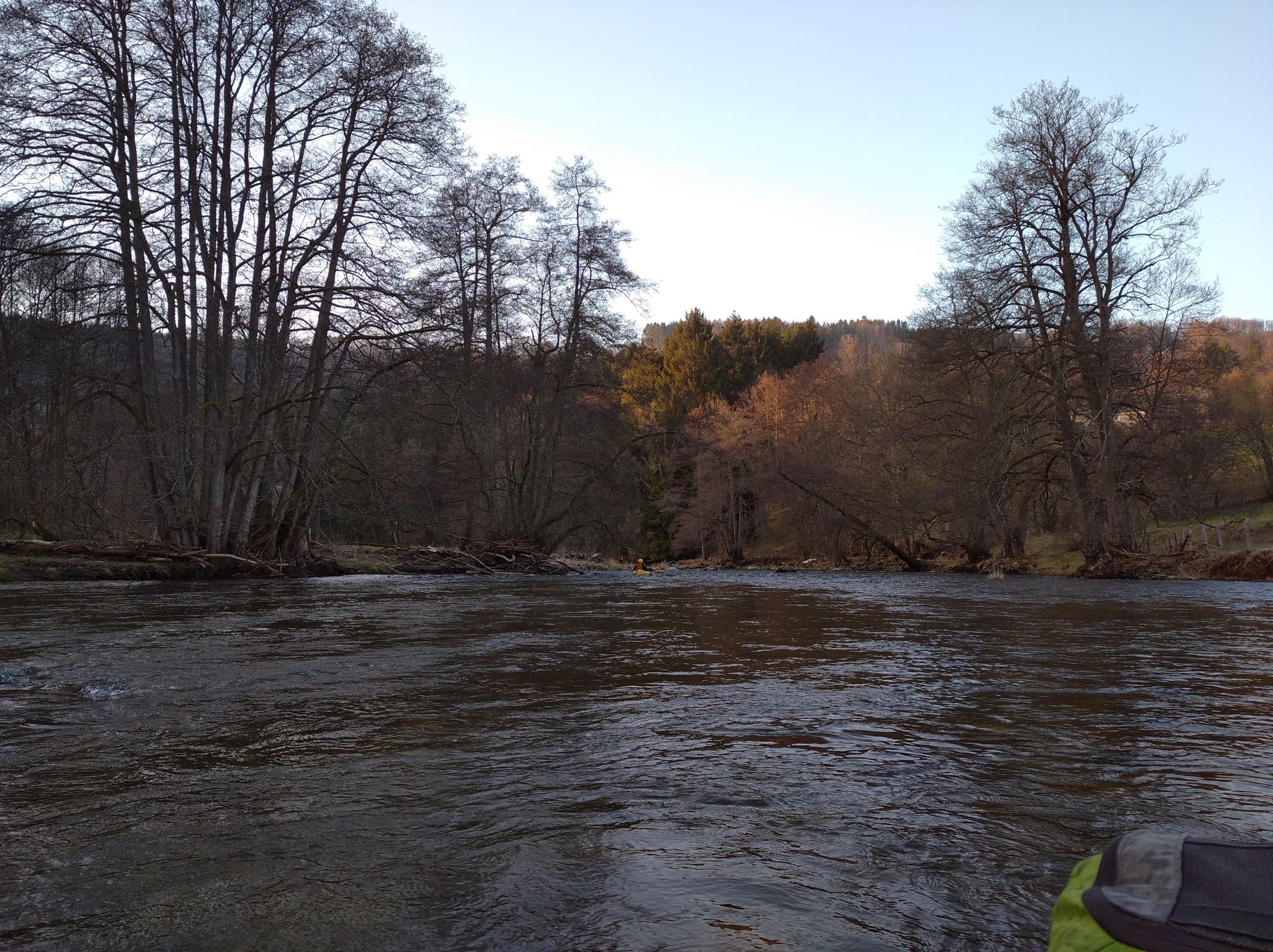 Le lendemain, la nuit a été glaciale et pas très reposante mais on repart et la marche nous réchauffe. On marche jusque Rochelinval pour rejoindre un point de départ sur la Salm qui est beaucoup plus fugueuse que l’Amblève de la veille ! C’est top, c’est super amusant tous ces rapides et ces petits arbres à esquiver dans temps à autre. Dounia évite bien les arbres mais collectionne les cailloux et se retrouve régulièrement le packraft en dehors de l’eau sur un rocher ^^.