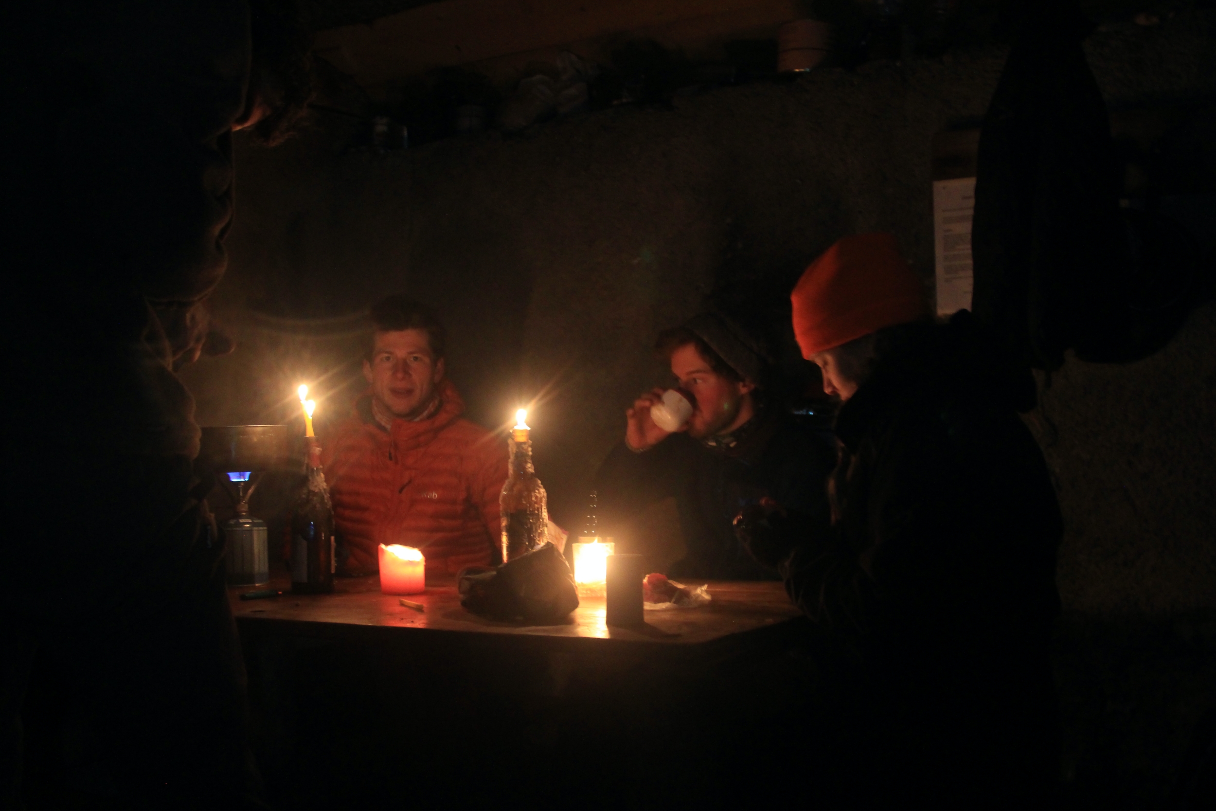 Le deuxième guide, Julien qui a pris la relève le 3ème et 4ème jour (faut croire que nous étions épuisants …) nous a permis d’explorer le massif des Ecrins. Il nous apprit un tas de choses liées à son expérience en montagne mais nous a également partagé en bonus ses notions de yoga, de Prāṇa (« souffle physiologique » dans la nature), d’alignement des planètes en l’année 2021. Il faut dire que son regard nous transperçait l’âme (presque trop par moments). Il a réitéré à de nombreuses reprises l’importance de la capacité d’émerveillement comme valeur clé pour l’année à venir et nous le souhaitons ainsi à notre tour à chaque lecteur. Grâce à lui nous avons réussi à trouver un refuge non-gardé (le Clot Saint Jean) dans lequel nous avons passé notre avant-dernière nuit, comblés par une fondue et bercés par de la poésie, par les phrases des yogitea et par le son d’un ukulele (que nous avons hésité à sacrifier pour faire démarrer notre feu). Bref, rien de mieux pour entamer la nouvelle année que de vivre notre meilleure vie dans ce lieu idyllique. Enfin, le cinquième et dernier jour nous avons skié en toute autonomie en tenant compte des précieux conseils reçus par nos potos les guides. Le sixième jour nous étions sur la route du retour vers notre cher patrie.