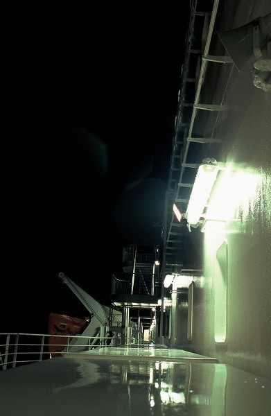 Mon ange gardien Allan m’a conduit au ferry en fin de soiree. J’ai passe une nuit hallucinante a faire le tour du ferry, a dormir sur le sol. Il y avait des gens endormis etendus partout et le bruit des machines a sous a bien trouble mon repos. Comme on peut occuper le peuple, c’est lamentable…