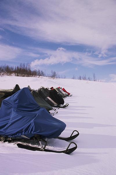 La politique suédoise concernant la motoneige est à l’extrême opposé: on peut conduire partout hors sentiers, sauf dans les zones protégées (correspondant généralement aux limites des parcs nationaux). Dans ces dernières, il est cependant fréquent que des pistes spécialement aménagées leurs soient autorisées. La plupart des étendues dégagées (lacs, clairières, …) sont donc criblées de traces décrivant des arabesques indescriptibles, dans lesquelles on lit sans peine l’extase des pilotes…