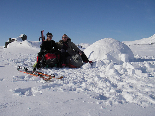 Nous avons donc entamé la construction d’un igloo. J’en avais déjà monté un avec Rémy le mois précédent; c’est une expérience intéressante, mais qui est tout à fait anecdotique au sein des techniques d’abri en terrain enneigé, en raison du temps, de la précision, et de la qualité de la neige exigées. En cas de nécessité, on creuse une grotte dans une pente, une corniche, une congère.