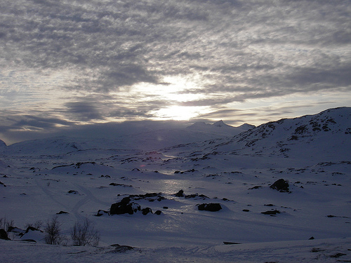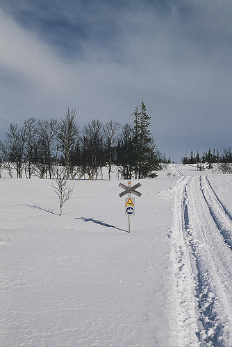 En Norvège, les motoneiges sont à peine autorisées. On peut se munir d’une autorisation spéciale si on assure l’entretien d’un refuge, pour accéder à son propre chalet de montagne, et bien sûr pour raisons professionnelles (éleveurs de rennes, …). Les rares pistes pour motoneiges sont marquées de facon provisoire, généralement à l’aide de longues branches piquées dans le sol à intervalles réguliers. La montagne se parcout donc en principe à pied ou à skis, selon la saison. Le marquage des sentiers, quant à lui, est réalisé exclusivement à l’aide de pierres levées qui portent l’inscription « T » à la peinture rouge, et de piquets en hiver pour certains itinéraires. La plupart des refuges sont non gardés, à charge de chacun d’en faire bon usage et de s’acquiter du prix de ses nuitées. Seuls les refuges situés dans les endroits les plus populaires sont gardés en haute saison.