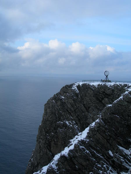 Nordkapp is really, on a strictly natural point of view, a wonderful place. While driving there, with the ocean on both sides, you feel like surfing on the prow of a ship, narrowing and narrowing until you get eventually projected above the ocean some hundreds of meters below. Taking a look down, you can see the waves crashing on the bottom of the impressive cliff, and it seems so far away that it looks unreal.