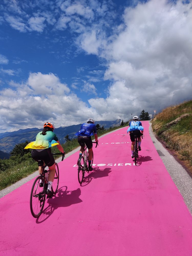 On y croise des cyclistes pro se préparant pour le tour de France femmes et notamment Elise Chabbey avec qui on a l’occasion d’échanger quelques mots avant de la voire s’envoler (trop forte). Elle remportera quelques semaines plus tard le maillot à pois de meilleure grimpeuse du tour.