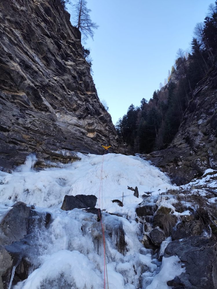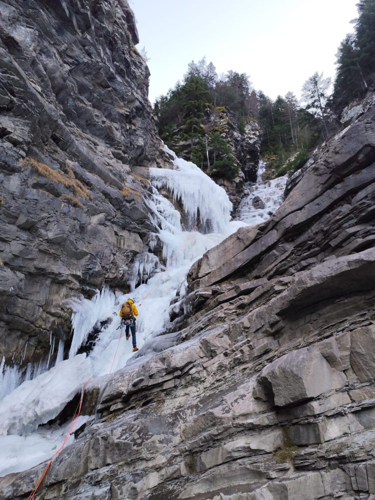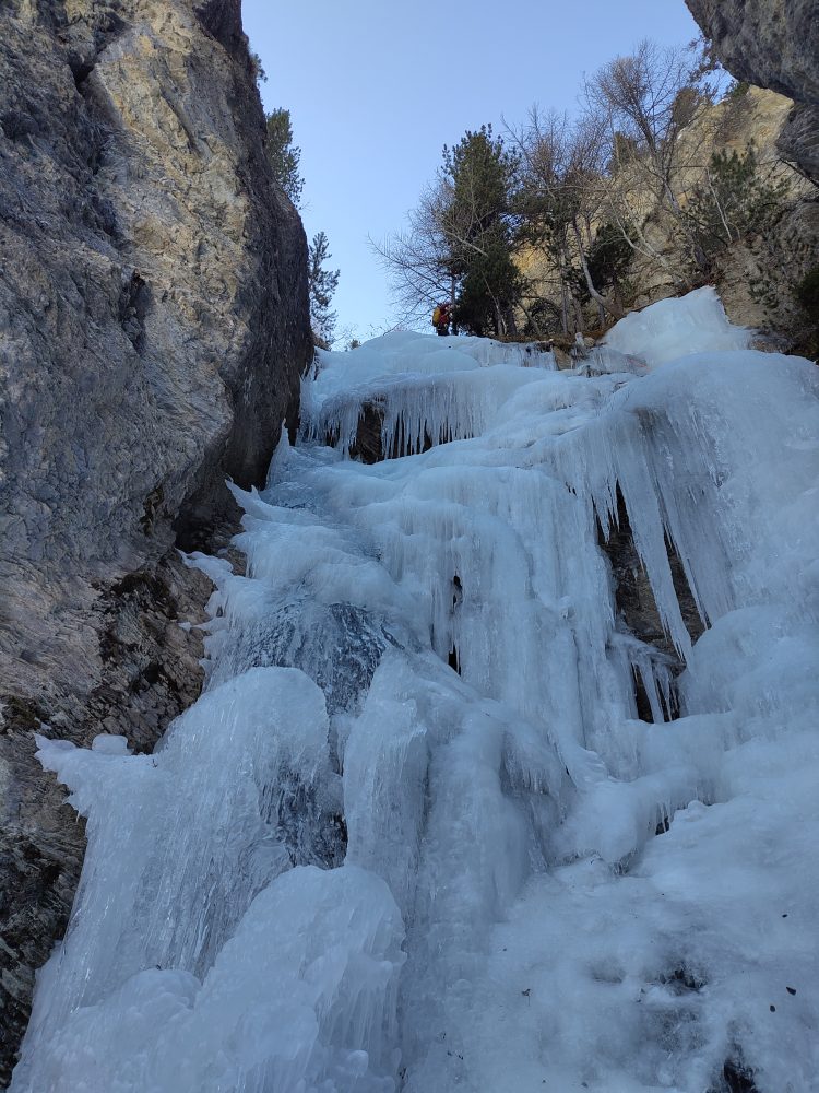Notre toute première sortie en cascade naturelle à deux. Autant vous dire qu’on s’est régalé et qu’on s’en souviendra. Une approche toute tracée et vraiment courte puis une cascade parfaite pour notre niveau (3/3+) sur environ 200m.