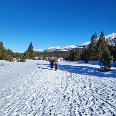 Les températures étaient franchement basses (de -10 à 15°C), mais l’ensoleillement incroyable ! Au vu du faible enneigement, il aurait été impossible de skier ou faire de la raquettes sur les hauts plateaux, nous conseillons donc de bien vérifier les webcam avant de choisir son matériel. Dans notre cas, une bonne paires de bottines et des crampons dans le sac étaient largement suffisant 🙂