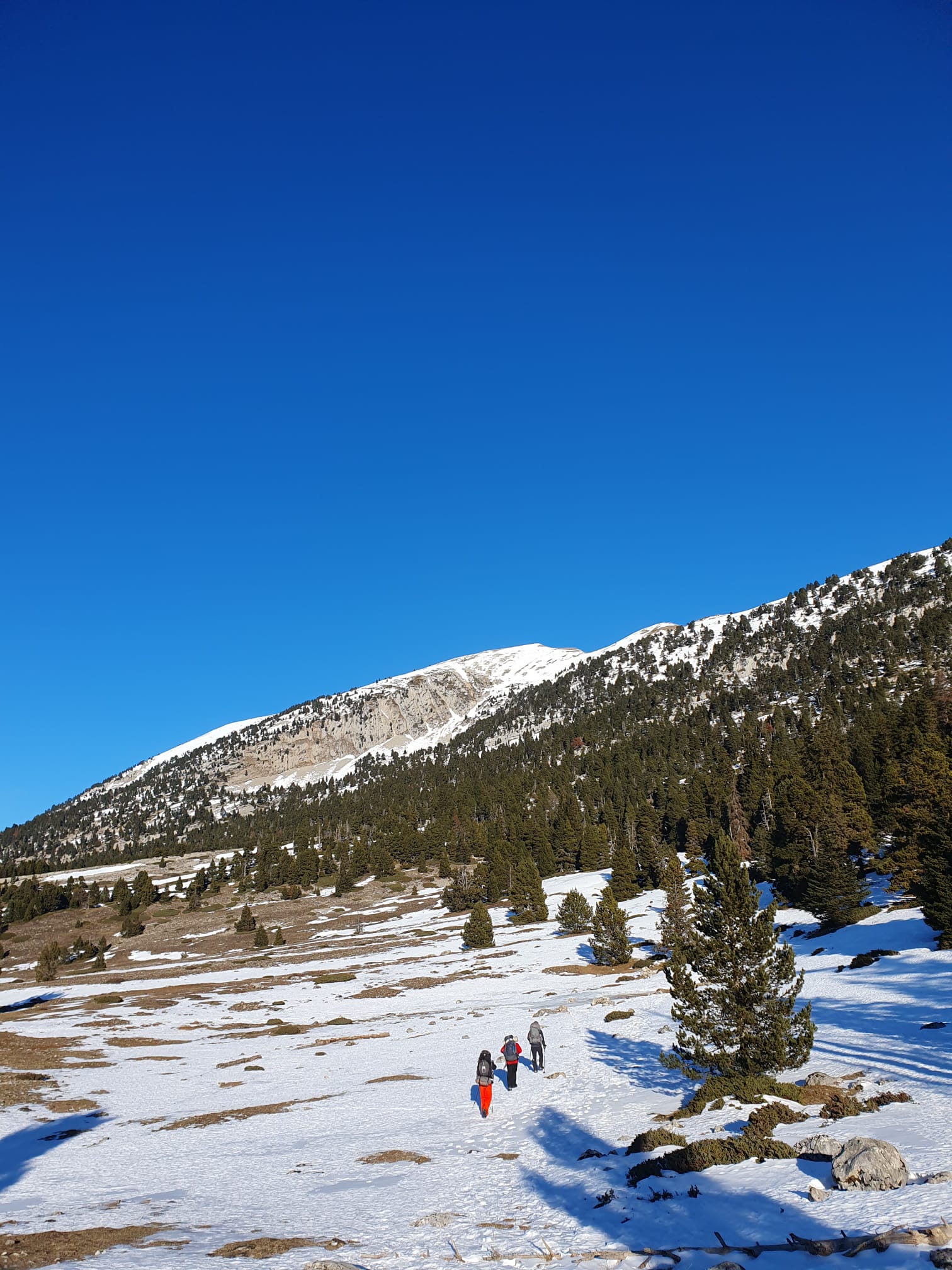 Les températures étaient franchement basses (de -10 à 15°C), mais l’ensoleillement incroyable ! Au vu du faible enneigement, il aurait été impossible de skier ou faire de la raquettes sur les hauts plateaux, nous conseillons donc de bien vérifier les webcam avant de choisir son matériel. Dans notre cas, une bonne paires de bottines et des crampons dans le sac étaient largement suffisant 🙂