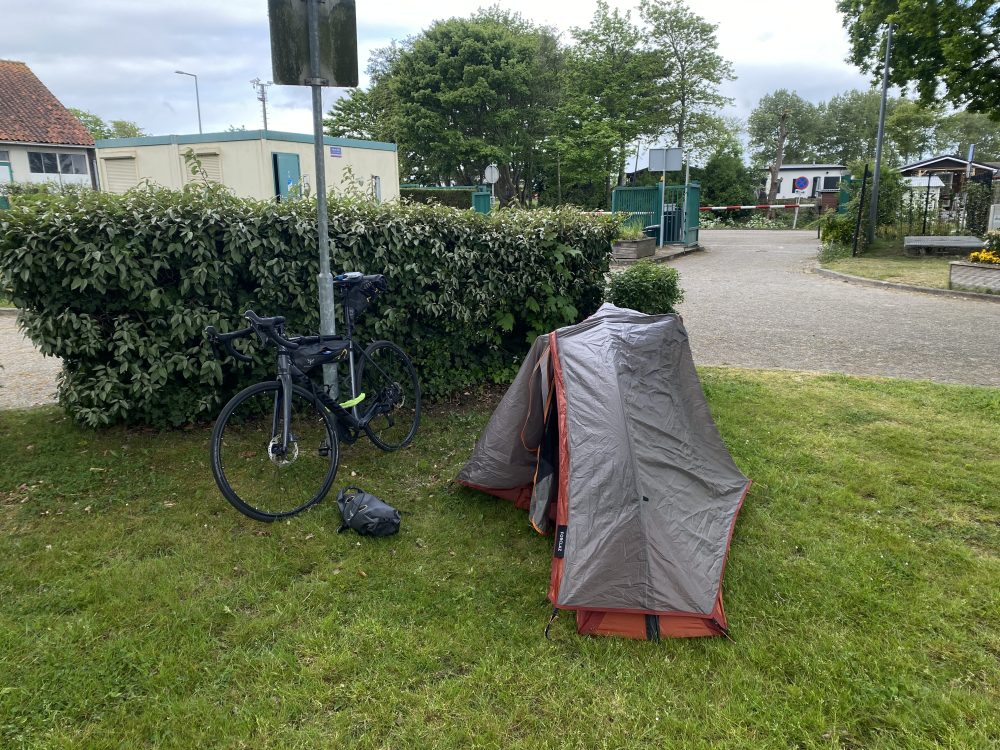 17h30 : Il me reste 55 km. Les nerfs sont à vif, le ciel se couvre, et je n’ai toujours pas trouvé d’endroit où dormir. Je poursuis ma route, porté par la motivation d’en finir avec cette journée. Finalement, j’atteins ma destination : Hoek van Holland. J’y loue un emplacement pour planter ma tente.